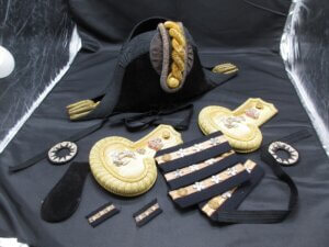 そこで今回紹介する買取品は旧日本帝国海軍大尉の品物です。軍服や帽子は時代の割には状態はシミや汚れもなくしかも儀礼の帽子や肩章など専用ケースに入ったものは極美品でした。きっとご家族もしくは当時の奥様が大切に保管していたものと思われます。将来、私の遺品も家内が愛情込めて保管してくれたら…という宝くじにも似た儚い夢を胸に抱いての出張査定でした。ありがとうございました。