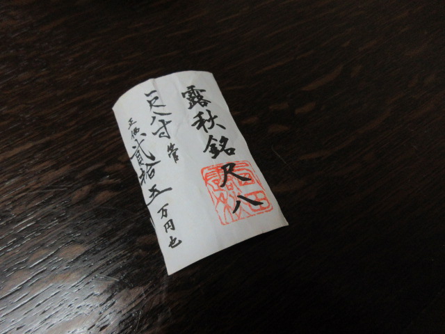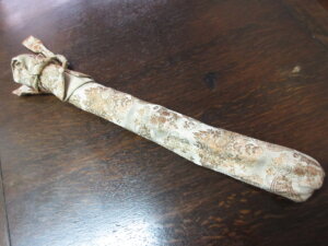 ◇この「尺八」は古竹でできており状態もとてもよく、古い尺八によくみられるひび割れや口元の割れなどは見受けられません。銘は「露秋」今の季節にぴったりの尺八です。歌口には金の縁、継ぎには金一線という高級な尺八でした。