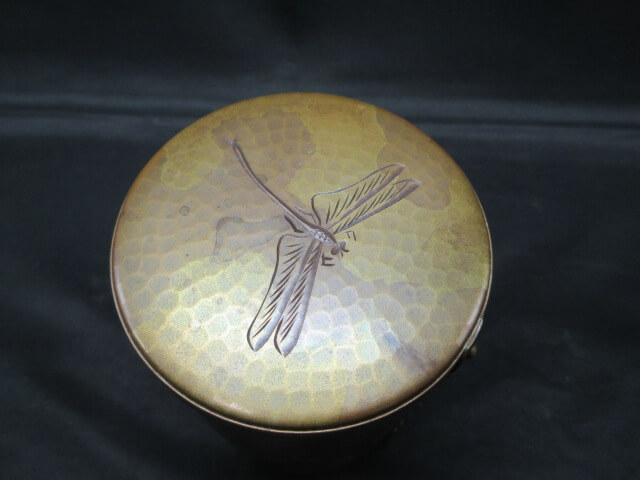 茶筒にもとんぼが描かれています/骨董品の買取は福岡玄燈舎