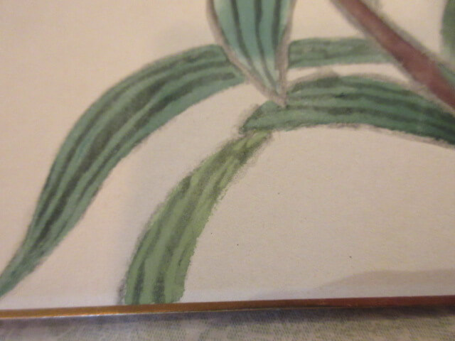 日本的な花を、写実よりも精神性重視で描いた作品。